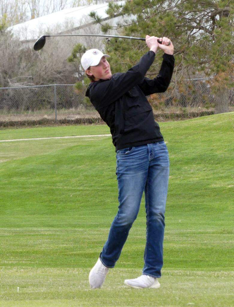 Published May 3, 2023 at 1600 × 2097 in Lucas Kroese tees off on the fourth hole at Sanborn in the dual with Unity Christian.