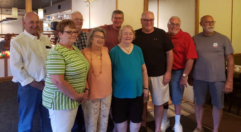 Members of the Sanborn High School Class of 1974 gathered Friday at Jay’s Restaurant and Lounge. Pictured are, from left, front, Gail (Holz) Gieser, Patti (Enger) Winkler, Darla (Vos) Brown; back, Dennis Brown, Bill Stallman, Jeff Dasen, Mark Noll, Steve Van Den Berg, Dan Verrips.