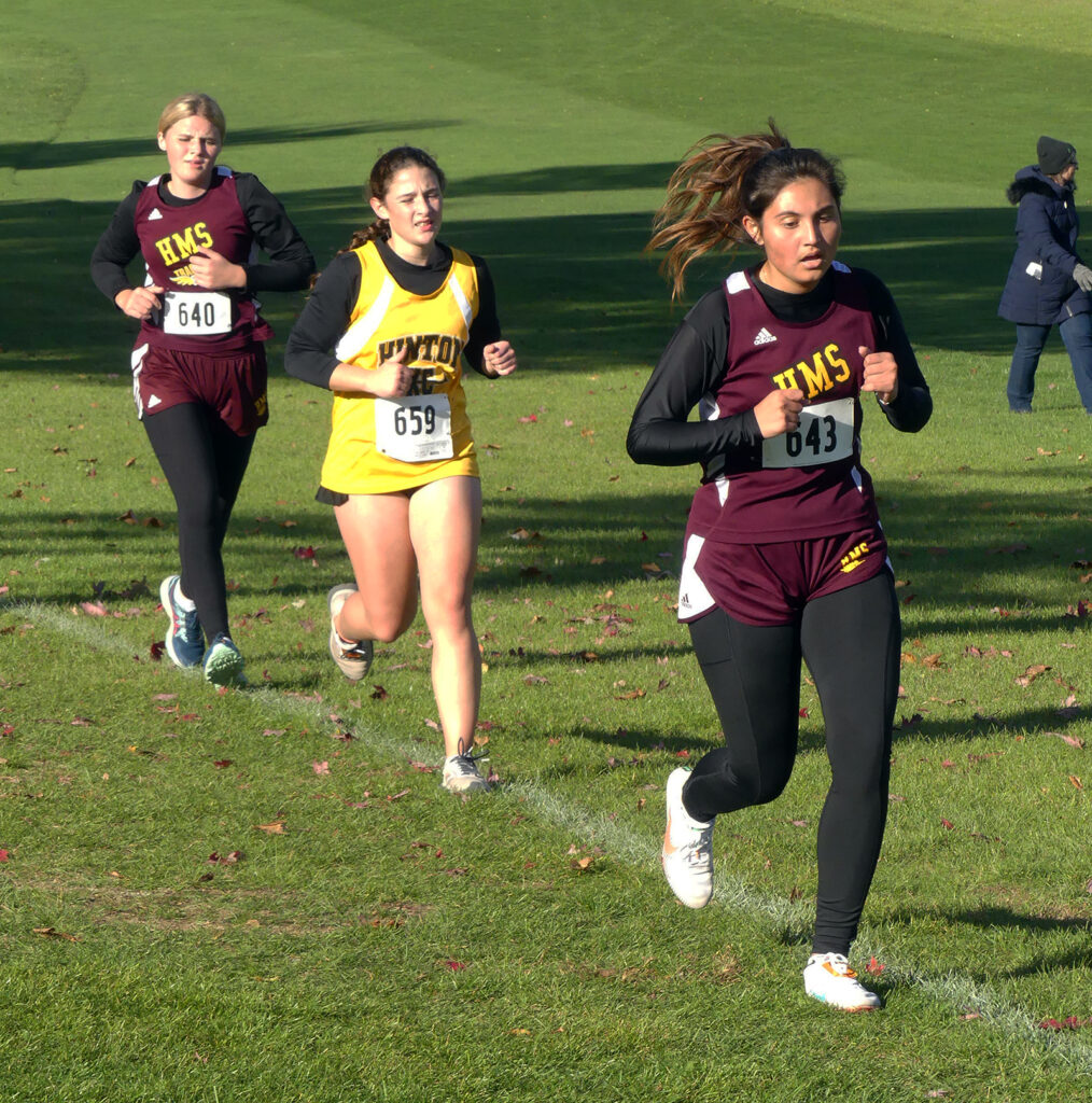 Julana Pasillas, right, and Kamryn Ebel were the second and third HMS runners to finish at the State Qualifying Meet.