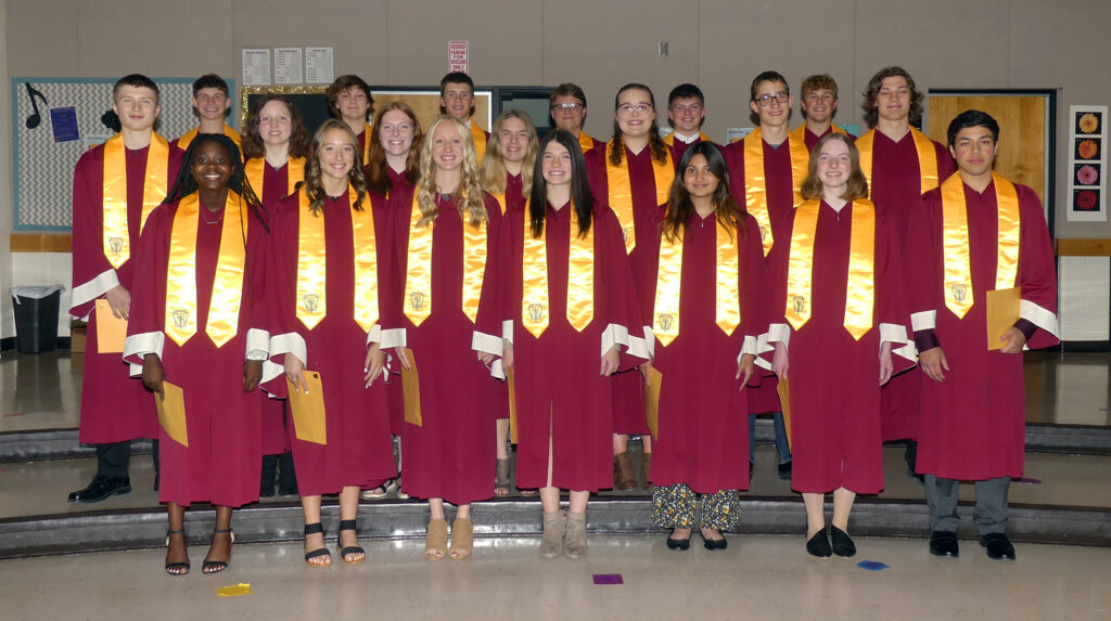 The Hartley-Melvin-Sanborn chapter of the National Honor Society held its Induction Ceremony for new members on November 1 at the high school. The 20 initiates are seniors Keith DeBoer and Emily Heneman and juniors Jaela Anliker, Joseph Billings, Anissa Bush, Ethan Diehm, Bryce Dodge, Kooper Ebel, Alyssa Gibbons, Morgan Grooters, Elise Haack, Travis Kamradt, Abigail Kunzman, Emily Mutombo, Juliana Pasillas, Emma Schmillen, Tanner Tesch, Tyson Tessum, Trenton Vollink and Bradley Zamudio.
