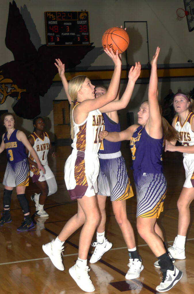 Hartley-Melvin-Sanborn allowed over 50 percent shooting by West Bend-Mallard but turned the Wolverines over 25 times. That combination worked out in the Hawks’ favor as they notched a 66-55 victory over the visitors December 13 at Hartley.