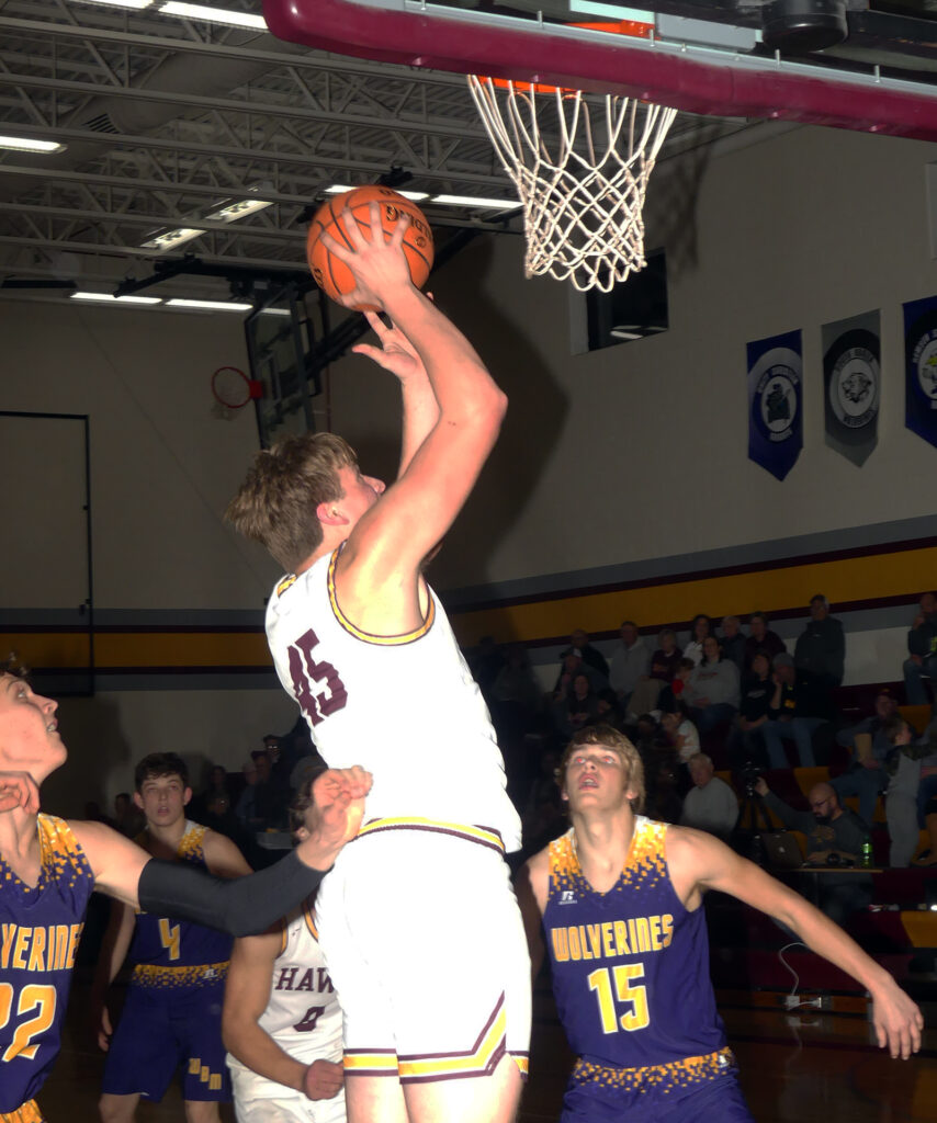 The visitors from the Twin Lakes Conference were able to trim the deficit to 10 points midway through the third frame. “We came out flat in the third quarter and credit West Bend-Mallard, there was no quit in them,” said the Hawk coach. “They battled back and outscored us in that third quarter to make it a game again. I was frustrated with how complacent and sloppy we let things get. Our effort on defense was poor, we made lazy passes and had some unforced turnovers that really hurt us. Poor third quarters have been an issue for us this season. It’s something we are going to have to learn to overcome. We won’t be able to get away with that against the top teams on our schedule.”