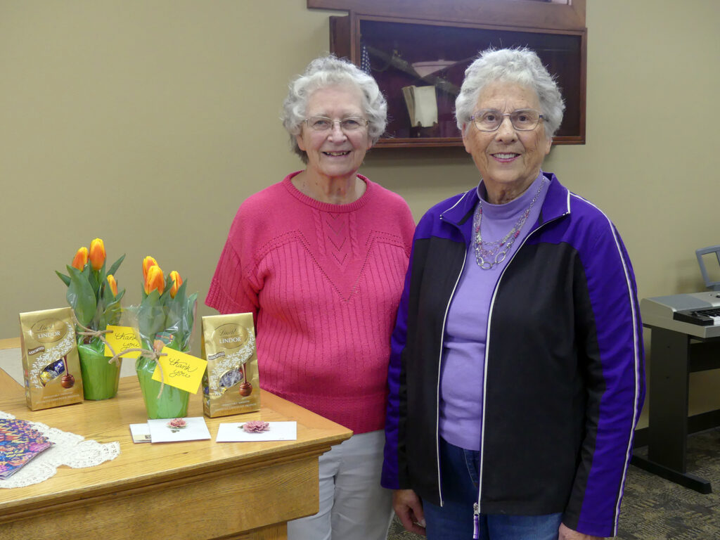 Sanborn Public Library hosted an Appreciation Coffee Open House March 31 for retiring library board members Esther DeBoer and Joan Klein. The public enjoyed refreshments while visiting with the retirees and thanking them for their years of service.