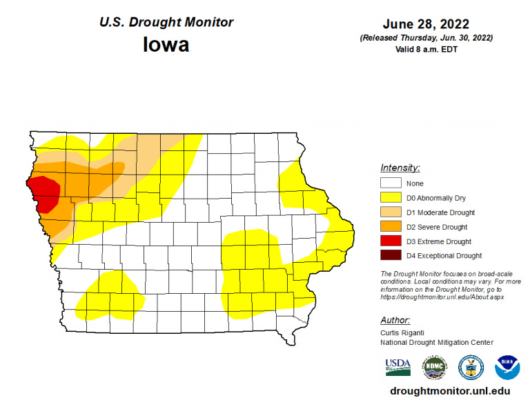 Drought Monitor: Area Of Extreme Drought Creeping Into Iowa