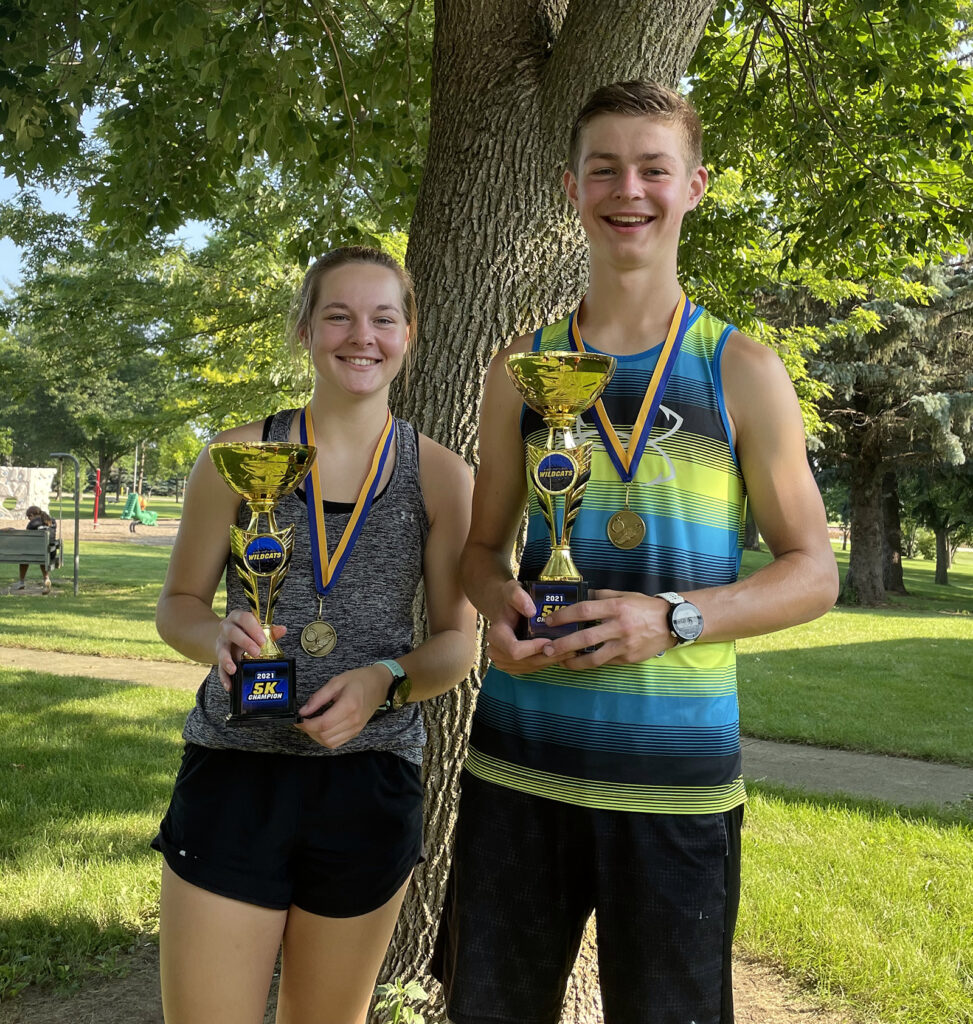 In the Sanborn Christian School 5K the Overall Female Winner was Whitney Minderhoud with a time of 22:10 and the Overall Male Winner was Zachary Minderhoud with a clocking of 20:27.