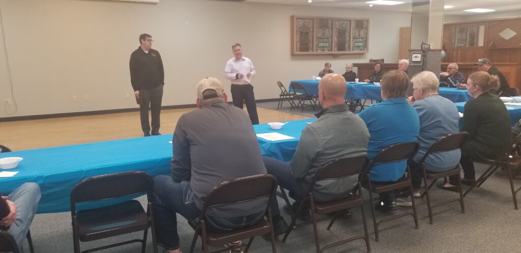 Laura Lux introduced the next speaker to the floor: Jim Zeutenhorst City Administrator. City of Sanborn Administrator Jim Zeutenhorst gave a recap of the many projects going on for the City of Sanborn as well as explained some of the potential projects to come. The city has just hired a full police department. There will be three regular officers and a reserve officer. Hartley Police department had been filling in until the City of Sanborn hired new officers. Zeutenhorst spoke on upcoming projects. They are in talks with County Engineers to work on improving E 2nd and E 3rd St. but with the materials it is hard to budget and get a bid on what it will cost. He spoke on the housing saying there has been a lot of interest in the lots. Jim spoke on the new Storm Water Utility that will be showing up on people’s bill soon. Jim says other communities already have something like this in place and it was needed because of past drainage issues. Residential lot $2.50 charge per month, business they can do one of two things depending on size of lot and based on utility prices and commercial $4 per lot but depends on lot and usage. Zeutenhorst spoke on the power situation saying it is becoming more common hearing about brownouts and blackouts. Sanborn gets its power from Missouri River where they own a Coal-Fired Power Plant. He said the EPA would like the scrubbers to be replaced on the stacks but that would cost a lot of money. EPA is pushing the coal-firing plants to close then there’s not enough power. The cities’ concern is about what to do for power. They experienced that during the cold snap about a month ago where they got a level one notice. Jim said at level one they get the generators ready at the water plant, level two notice the send out notices and warnings about possible power outage, level three some sections of town might be without power. The city is talking about moving to generation power and what it is. Questions were asked about time frame for this project. Zeutenhorst said they would know more maybe in the spring. A facility would have to be in place and he wasn’t sure how it would effect rates.