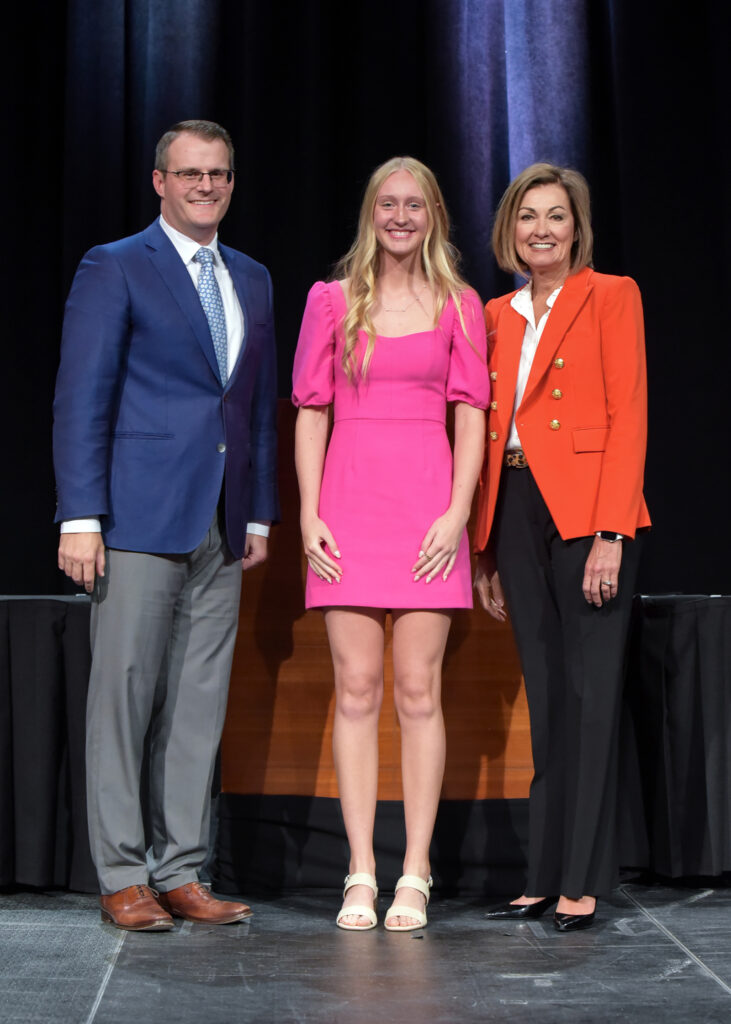 Elise Haack, daughter of Ryan and Erica Haack of Sanborn and a student at Hartley-Melvin-Sanborn was recognized by Governor Kim Reynolds and Lt. Governor Adam Gregg for outstanding academic achievement at the 21st Annual Governor’s Scholar Recognition Ceremony on April 30 at the Iowa Events Center in Des Moines.