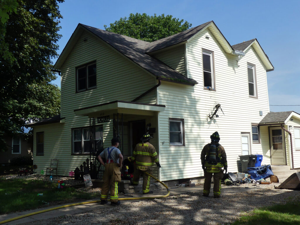 The Sanborn Fire Department was called to a house fire at 10:04 a.m. on Thurday, June 22. Upon arrival at the house, located at 410 W. 5th Street in Sanborn, they found an upstairs window air conditioner was on fire. Firefighters made entrance to the home and pushed the unit out to the ground. Some other items that were next to the unit had started on fire and they were thrown out the window and watered down.
