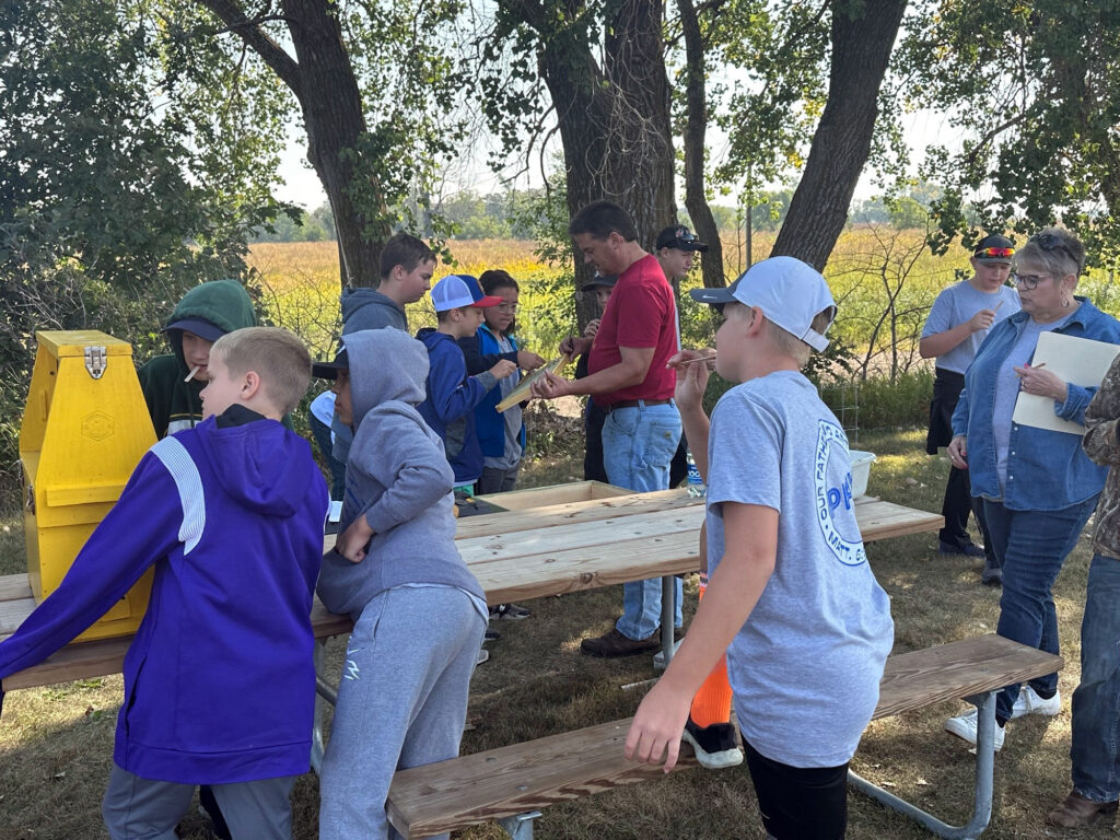 Sessions included: Predator/Prey (Sarah Fiddelke of the Prairie Heritage Center), Fishing (Michael Sundall – Pheasants Forever), Spears (Luke Davison – PHC), Soil Health (Andrew Koehlmoos – NRCS), Nature Scavenger Hunt – (Kaarina Van Berkum – Sioux County State Technician), Prairie Life (Kerisa Pingel – Sanford Museum), Water Olympics (Riley White – NRCS), Furs (Lindsey Kleinhesselink – Prairie Heritage Naturalist) and Bees (Philip Westra – Sanborn Christian Reformed Church).