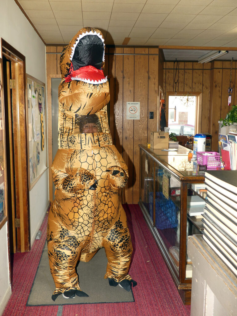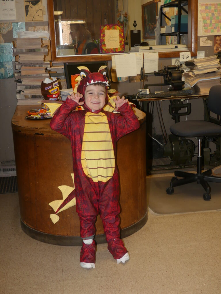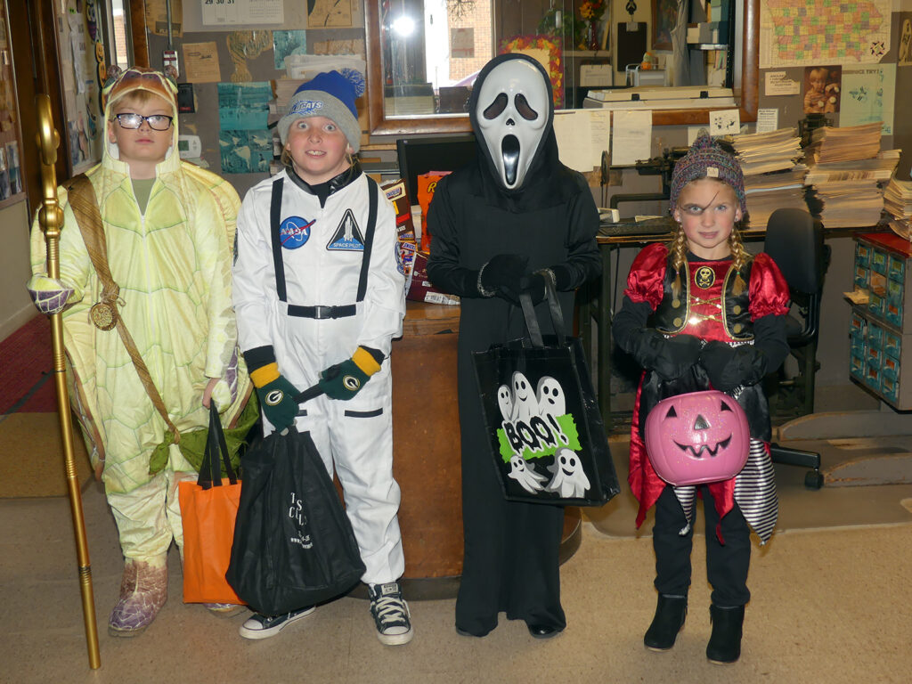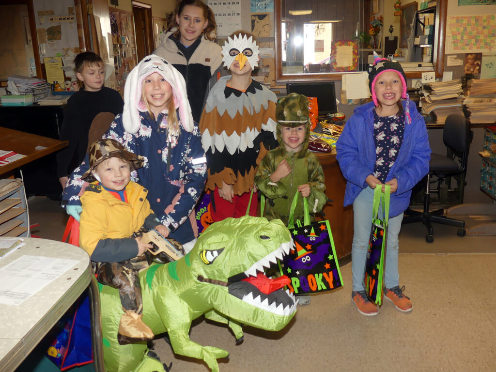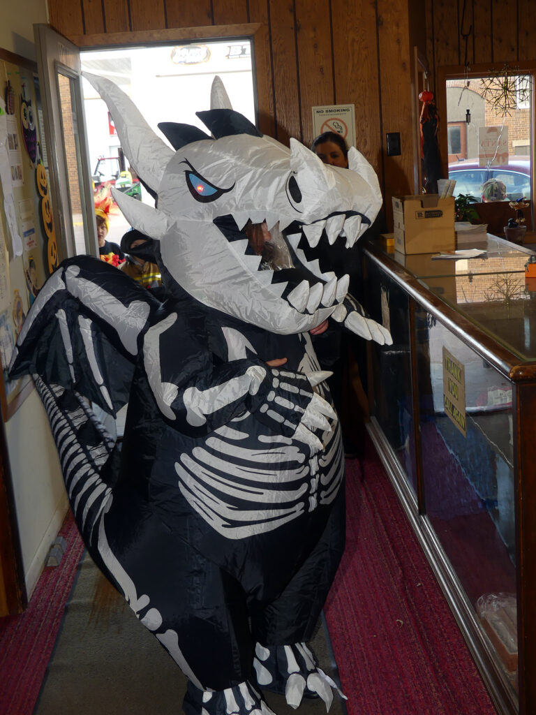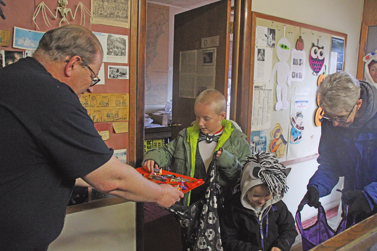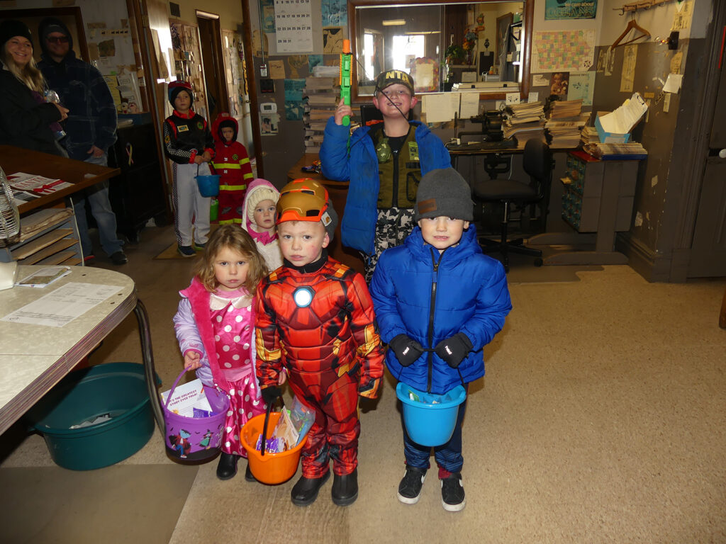 A variety of goblins, gouls, superhero, dragons and dinosaurs came by the Pioneer for treats during Sanborns downtown trick or treat held Halloween evening.