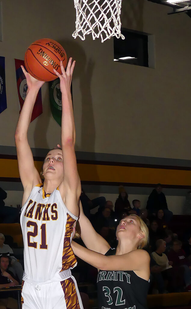 Kylee Schiphoff converted a tie-breaking three-point play with 1:35 left in the game and Hartley-Melvin-Sanborn held on for a 51-49 victory over Trinity Christian December 1 at Hartley. The Tigers had two shots at tying the game in the final seconds but both went astray. With a second consecutive win, HMS evened its record at 2-2.