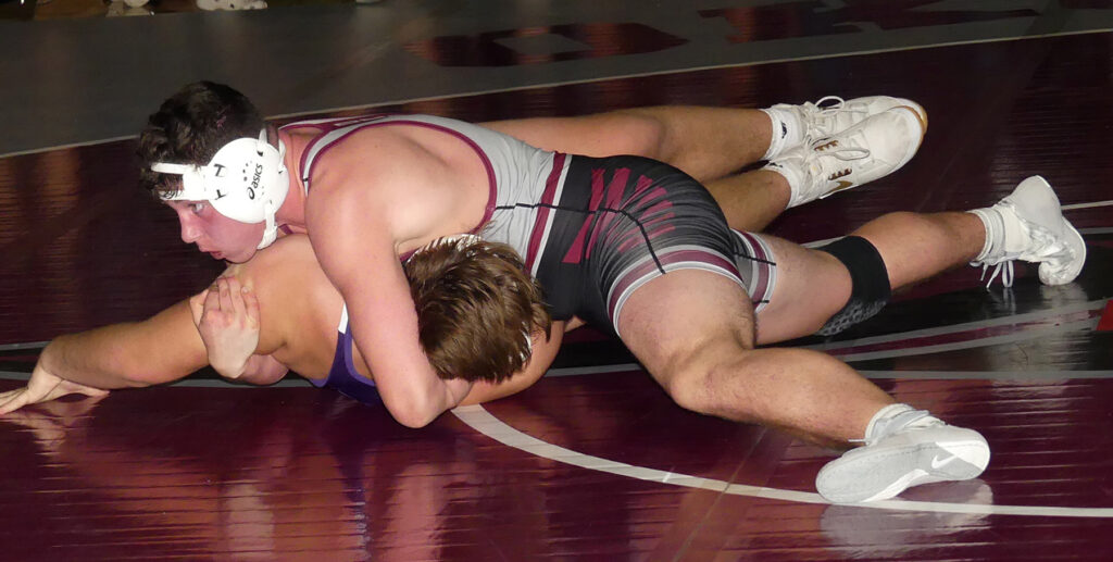 HMS wrestlers Camden Ball and Nathaniel Ball each wound up on the short end. At 132 pounds Camden was the victim of a late pin (5:31) by Kenny Ness. Nathaniel lost a narrow 7-6 decision to Aaron Wilson in the 132-pound bout.