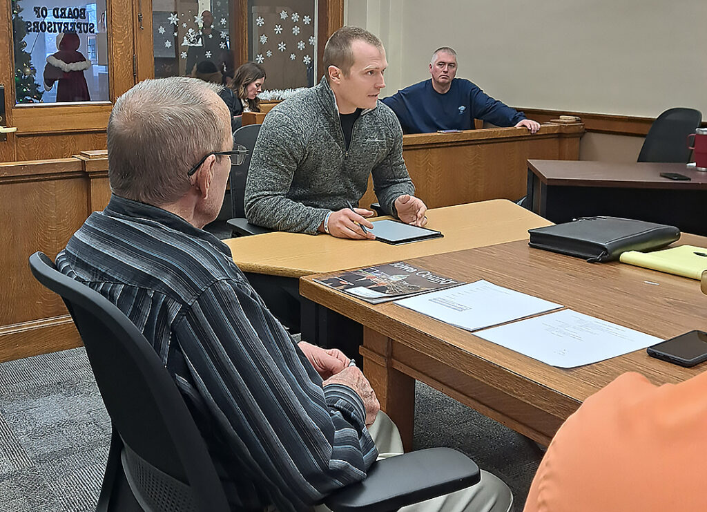 Zach Dieken, State Representative heading into his sophomore year as a state elected official, attended the O’Brien County Supervisors meeting on December 12. He was there to listen. He said, “Last year was an eye-opening experience for me,” referring to his freshman year in the legislature. He explained he had already visited with Osceola County Board.