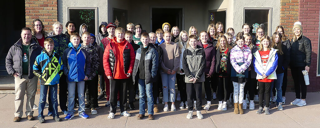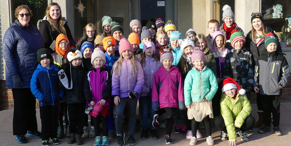Sanborn Christian School students and staff were spreading some tidings of joy last Thursday on their last day of school before the Christmas break. The entire school was out and about in different areas around town during the morning hours.