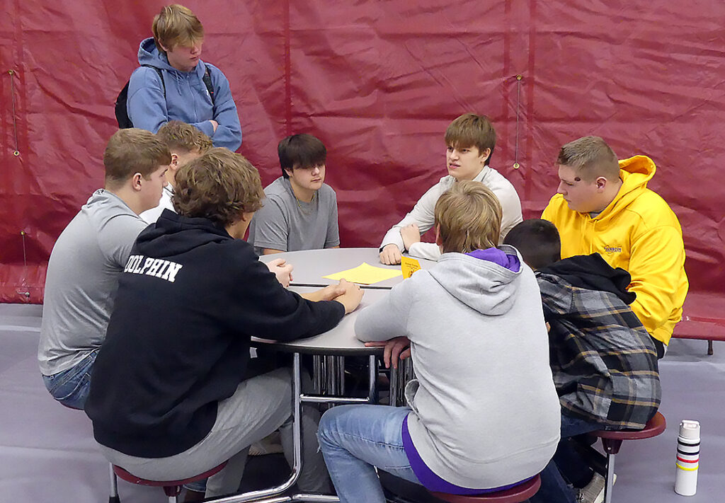 After this sweet treat, students were divided into groups based on their grade level. Freshmen and Sophomores met in groups of six or seven students with Community Career Professionals for approximately 10 minutes each speed round for five rounds. Those Career Professionals included P & S Electric, Spencer Hospital, New Beginnings, CFE, Savings Bank, Real Reflections, HMS Administration, Schierholz Chiropractic, Army Reserve, Jackie’s Floral Center, CFE Interior Design, Hartley Vet Clinic, Hartley Police, Tessum Farming, and Treimer’s Insurance and Realty.