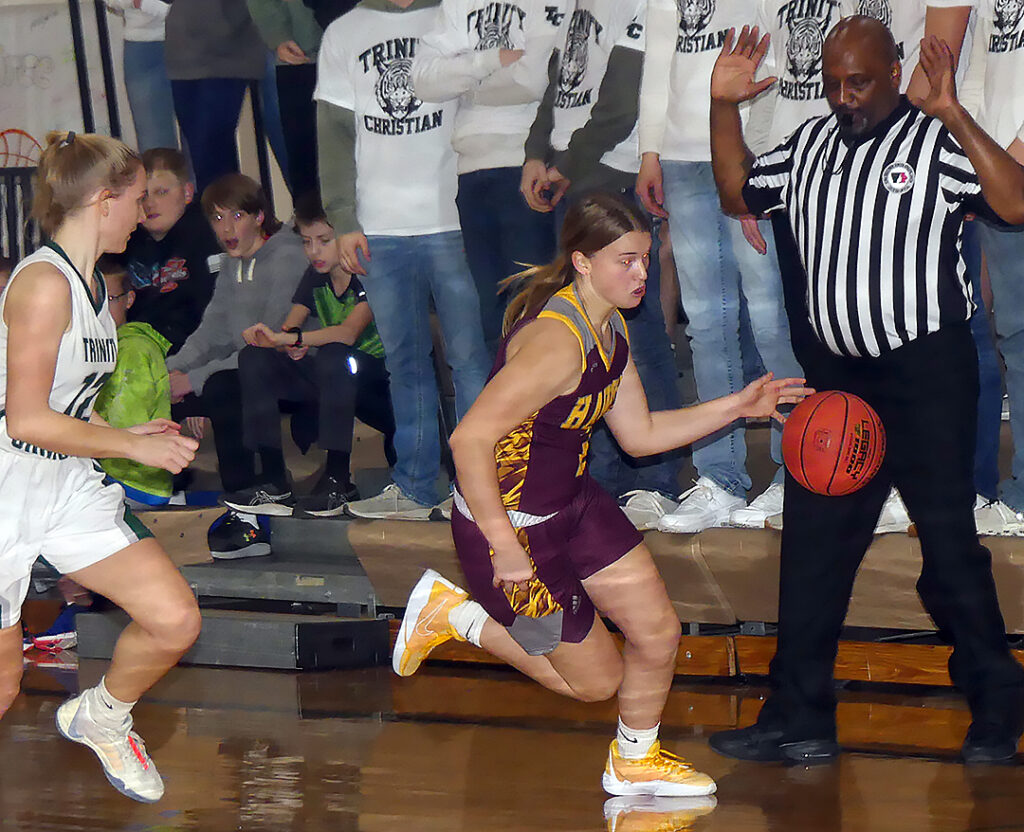 On a night when long-range accuracy was required, Hartley-Melvin-Sanborn came through in style. With Trinity Christian clogging the lane area, the Hawks found openings on the perimeter. By pouring in 13 baskets from behind the three-point line, HMS was able to overcome being down 11-0 to ultimately win 63-48 February 2 at Hull. The victory enabled the Hawks to raise their War Eagle Conference record to 5-4 while improving to 12-8 on the season.
