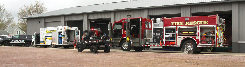 A fun-filled, family-friendly Safe Kids Day event was held on Saturday, April 27th at the Sanborn Fire Station. The event was free to the public. Local fire fighters, EMTs and police officers were on hand to tour fire trucks, the ambulance and police vehicles. The helicopter from Sanford-Med was on hand for a short time for kids to tour. The event was cold, windy and with a little rain there was plenty of fun activities for kids to do both outside and inside including jumping in the many inflatables, some firefighter games, kids meet local police officers, EMTs, fire fighters, medical personal, practiced emergency care, there was face painting, caricatures, balloon animals and so much more to do. There was a yummy freewill hotdog and chips fundraising lunch served by the Firefighters. The event was Co-hosted by EMS Team & Family Health Chiropractic, PC.