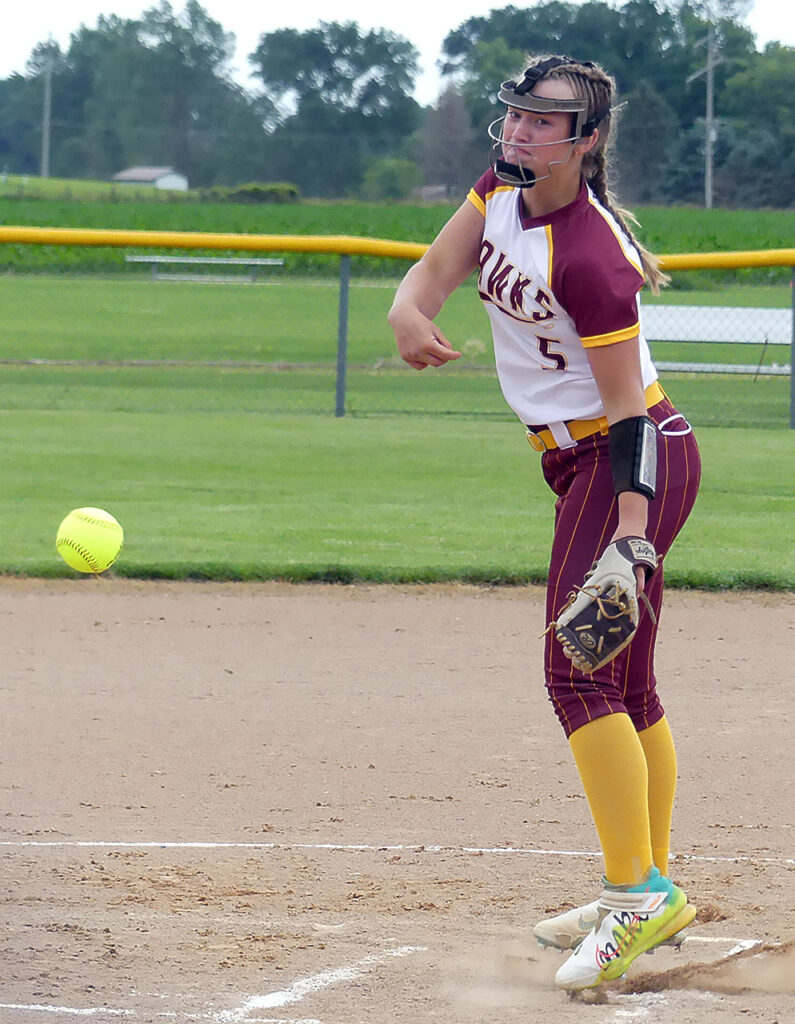 Hartley-Melvin-Sanborn and George-Little Rock evidently felt that a chilly, blustery and overcast First of July was a good day to play two. That’s just what they did with HMS sweeping both ends of the varsity doubleheader. One hit turned out to be enough for the Hawks to win the opener 4-2. The pitching got a little more support in the nightcap as HMS won the War Eagle Conference contest 10-3. The Hawks played error-free ball throughout the doubleheader. HMS finishes in seventh place in the conference with a record of 4-6.