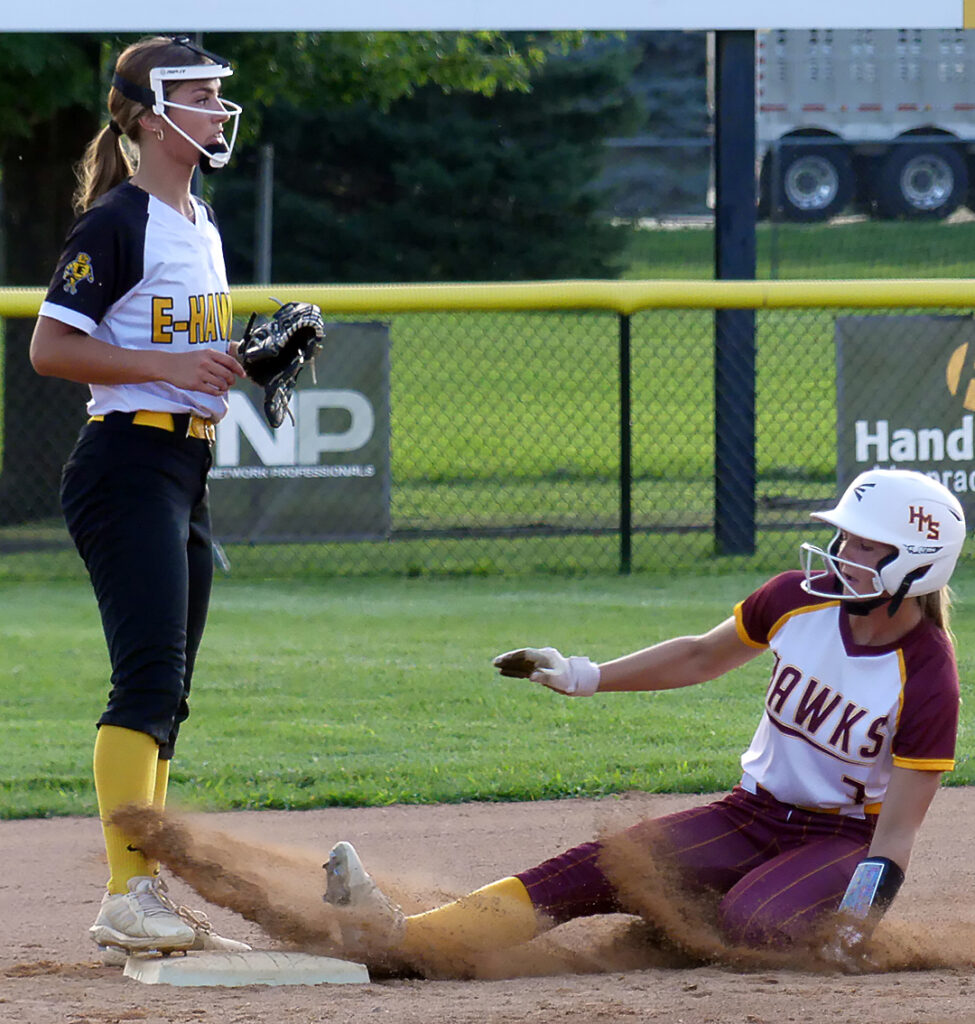 Ebel also had a single in the sixth and finished with two hits. Lindsey Van Es recorded a bunt single in the first inning as part of the Hawks’ six-hit night. Ebel reached base on an error in the opening inning and Abby Otto and Sheeler each walked in the second. HMS stranded five runners while the E-Hawks left seven on base.