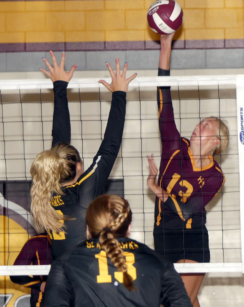 Hinton put down 43 kills in 73 attempts with only four errors for a kill efficiency of .534. Blackhawk standout Bailey Boeve accounted for 18 of those kills in 23 attempts with only one error.