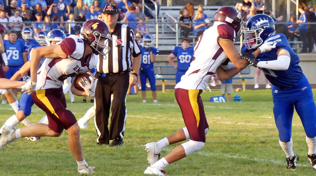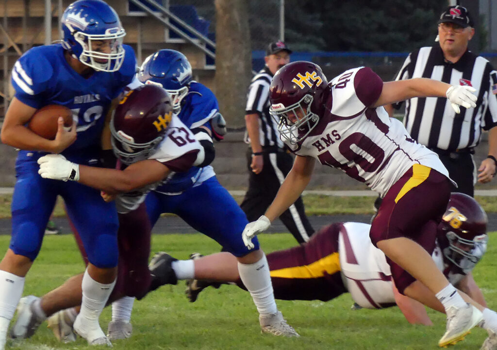 “They were just crazy physical,” said HMS coach Jeremiah Delzer of the Royals. “Shout out to them because they had a good game plan, they were super physical and they found our weaknesses and just kept exploiting them. We’ve got to find better ways – and it starts with me as coach – to get us in a spot where we can make plays in that spot. We’ve got to get back to the chalkboard a little bit and try to figure things out, watch film review, work on our techniques and fundamentals and we’ll find a way. I don’t think this scoreboard will tell the story. I would say this game was probably a lot more competitive until it got out of hand.”