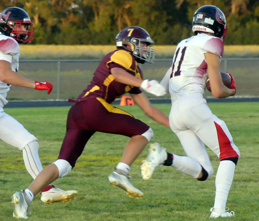 Gellerman recorded eight tackles. Making four stops apiece were Leth, Schierholz, Vogt, Mastbergen, McCarter, Hunter Daggett, Blake Meendering and Alex Billings. Leth also intercepted a pass. “It just comes back to our fundamentals and our techniques,” explained Delzer. “Our preparation was much better this week, I think, and we did a better job of holding through our fundamentals and techniques even when we were tired so I think that’s kind of what led to our defensive success. Our slip ups are just simple things like not wrapping up on a tackle. I think a lot of their big plays came from when we had a guy hit in the backfield and we didn’t get him to the ground. We’ve got to work on things like that and some of that’s energy and just good fundamentals and techniques that we talk every week.”