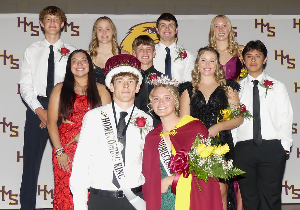Hartley-Melvin-Sanborn crowned its Homecoming King and Queen at the coronation festivities October 1 at the high school gym in Hartley. The King and Queen are James Gellerman and Kamryn Ebel. The other senior members of the Homecoming Court are, from left, back row, Aiden Bush, Megan Otto, Slayton McCarter, Abby Douma; middle row, Jamie Diaz, Jack Mastbergen, Frankie Mohni, Moises Gonzales.