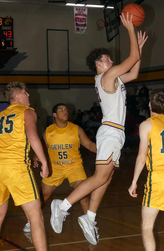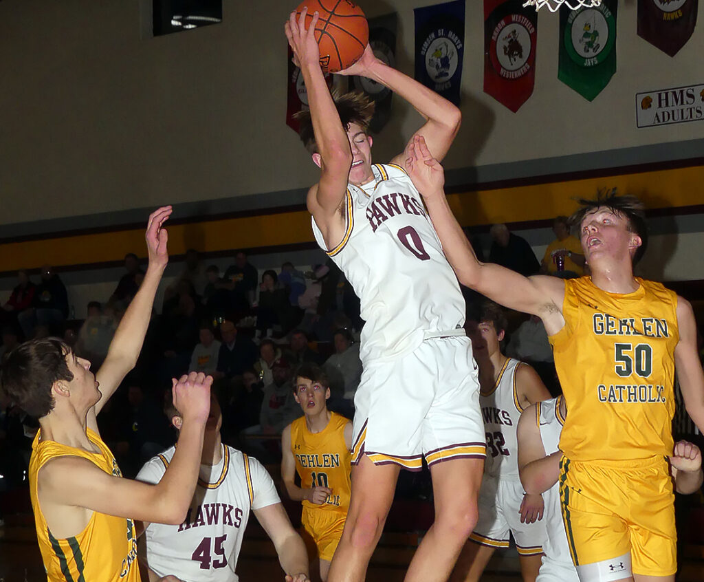 Some easy baskets in the lane helped Gehlen Catholic jump out to a 10-0 lead over Hartley-Melvin-Sanborn. The Jays never looked back in handing HMS a 55-39 loss December 13 at Hartley. The match-up was the season’s first official War Eagle Conference game for the Hawks who fell to 1-4 on the year.