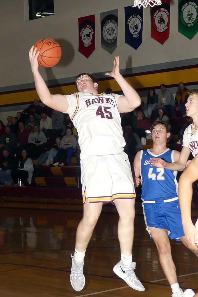Hartley-Melvin-Sanborn’s tight basketball game with Remsen St. Mary’s abruptly turned into anything but. HMS was within a point at 11-10 early in the second quarter. St. Mary’s then went on a 21-6 run to close out the half on the way to a 59-29 War Eagle Conference win December 20 at Hartley. The loss dropped HMS to 0-3 in the conference and 1-7 in all games as the team headed into the Christmas break.