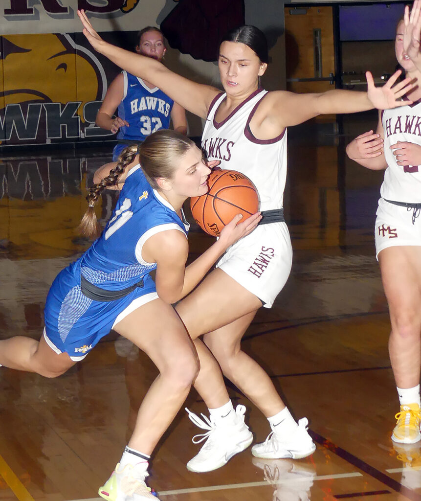 Hartley-Melvin-Sanborn turned around a four point halftime deficit in a big way. HMS outscored Remsen St. Mary’s by 19 points in the second half to defeat the visiting Hawks 50-35 December 20 at Hartley. The victory allowed the host Hawks to move to 3-0 in the War Eagle Conference and take a 7-2 overall record into the Christmas break.