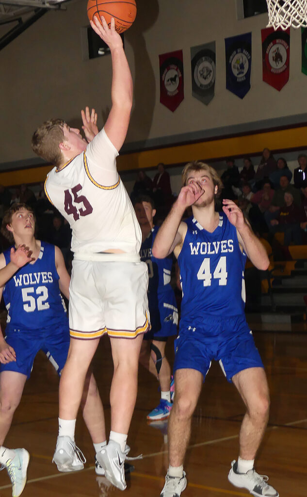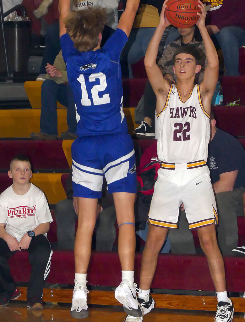 Caden Douma scored 30 points, grabbed 10 rebounds and recorded four assists. Isaac Schierholz contributed 12 assists, 11 rebounds and three points. Billings’ 10 points accompanied six rebounds, four blocks and two steals. Kolby Douma had five points and two assists and Vogt seven rebounds, four points and two steals. Riley Wiersma added a basket for two points. The Hawks had twice as many assists (18) as they did turnovers (nine). The Wolves turned the ball over 10 times.