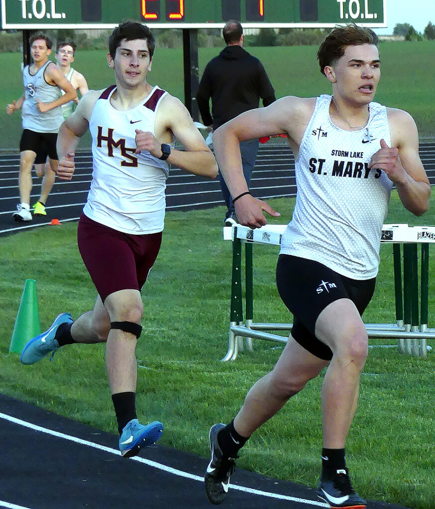 The best finishes for the Hawks were the fourth-place efforts by Caden Douma in the high jump and by the 4×100 relay of Caleb Grotluschen, Graham Lux, Perez-Perez and Nathan Stofferan. Placing fifth were Isaac Schierholz in the high jump, Stofferan in the 100 meters and Lux in the 200 meters. Sixth place went to Alex Billings in the shot put and to Ryan Grotluschen in the 400 meters.