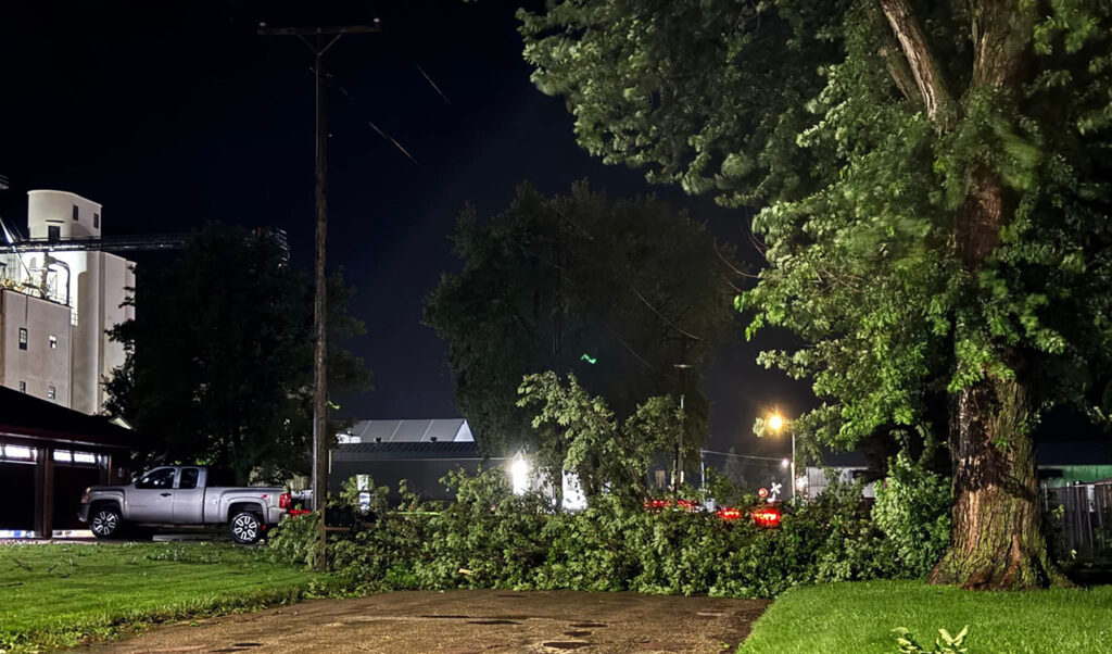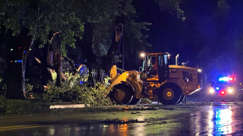 City crews were out all over the area Monday evening clearing debris from the storms that rolled through Highway 18. Photo contributed by Dan Gottschalk.