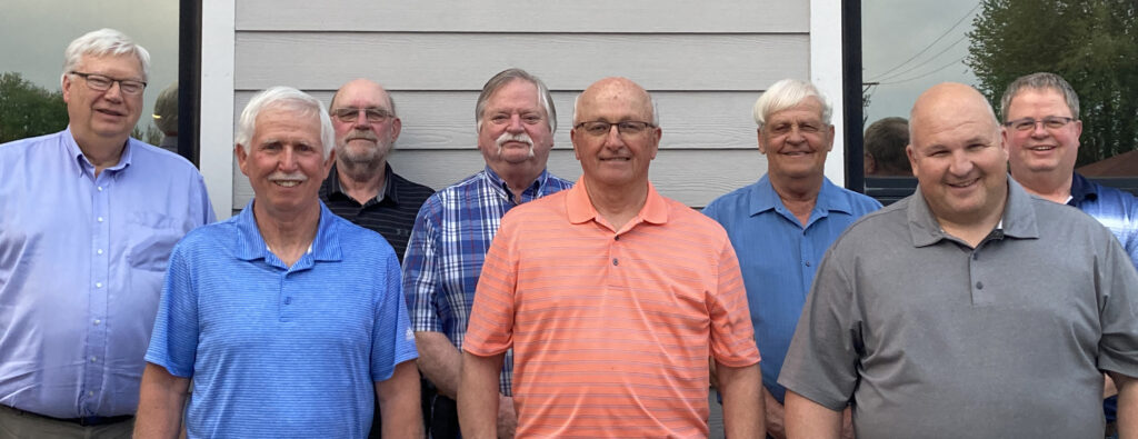Current Sanborn & Hartley Funeral Home board members pictured at the spring gathering are, from left, front, Lee Reitsma, Bob Anema, Funeral Director Kent Billings; back, Bill Treimer, Wayne Van Roekel, Steve Lux, Craig Sorensen, Rod Den Hartog.