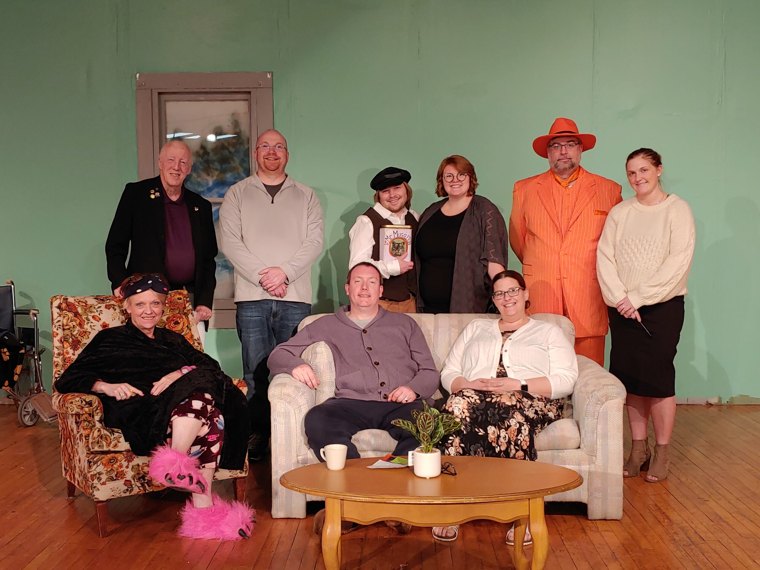 Presenting “According to Schedule” this weekend at Primghar Community Playhouse are, from left, front, Shannon Baack, Mark McAlpine, Jennifer Helmers; back, director Bill McAlpine, Sean Pulatie, Sean Lane, Dana Howrey Brian Kleve, Aimee Jenness.